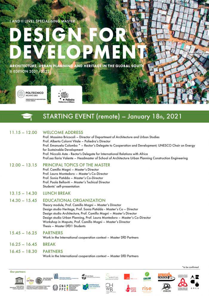Great kick off today of the second edition of Design for Development Master with Director, Prof. Camillo Magni, Co-Directors, Proff. Laura Montedoro and Sonia Pistidda and Technical Director, Prof. Paola Bellaviti.